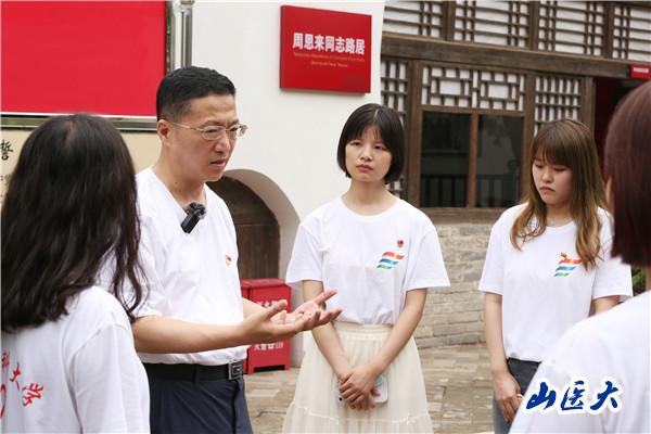 活动中,王宏伟结合2017年习近平总书记参观考察时的谆谆嘱托,晋绥边区政府及军区司令部旧址给学生党员上了一堂生动的党课。他强调,我们看到了一幅幅革命影像,听到了一个个红色故事,目睹了一件件红色文物,它们用最沉静的姿态,承载着中国共产党人坚如磐石的信仰信念,彰显着历久弥新的初心使命,让人心潮澎湃,催人奋进。在黄土高原丘陵沟壑间,险峻恶劣的自然环境和艰苦卓绝的革命战争,赋予吕梁儿女特别能吃苦、特别能战斗的英雄气概,铸就了伟大的吕梁精神。他要求,作为学生党员,在新时代的伟大征程中要提高党性修养,坚定理想信念,强化使命担当;要不忘初心,继续前进,继承和发扬老一辈革命家“艰苦奋斗、顾全大局、自强不息、勇于创新”的革命精神,为祖国医药卫生事业的发展和人类身心健康奋斗终生。