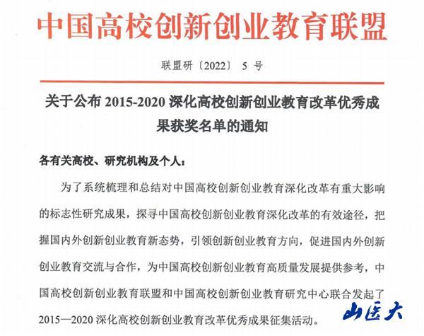 8月23日,中国高校创新创业教育联盟、中国高校创新创业教育研究中心公布2015-2020深化高校创新创业教育改革优秀成果,我校多项创新创业教育成果获奖。
