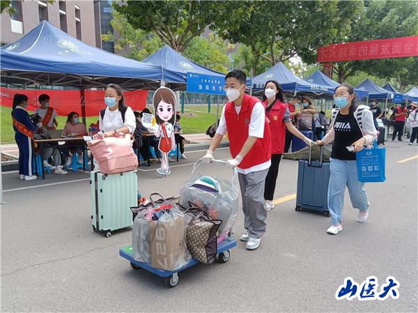 “一个个推车承载了梦想,一次次服务传递了温暖,一声声“谢谢”吹散了疲惫。”基础医学院2021级志愿者张少玉这样说道。