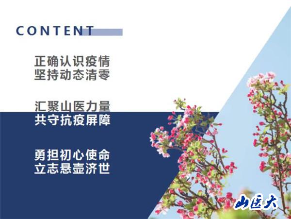 杨洁从“正确认识疫情、坚持动态清零”“汇聚山医力量、共守山医防线”“勇担初心使命、立志悬壶济世”三个方面进行了讲解。首先介绍了目前全国和山西疫情的总体形势,强调必须毫不动摇坚持既定防控策略和方针,讲述了学校为保障师生身心健康、筑牢校园安全防线提供的坚实保障,分享了山医师生和各附属医院医护人员抗疫的感人故事,希望大家树立责任意识,严格遵守政策法规、抓好学习、调节身心健康、学习抗疫精神,肩负起时代使命,让青春在奉献中绽放绚丽之花。