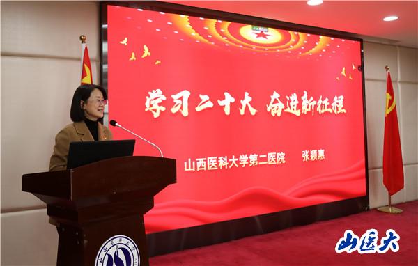 会上,王军指出,张颖惠代表的宣讲报告主题鲜明、内容丰富、层次清晰、涵义深刻,我们从中感受到了平等和简朴,感受到了心潮澎湃,对全校党员干部、广大师生医护员工深入学习贯彻党的二十大精神和习近平总书记重要讲话精神具有很强的指导意义。学习宣传贯彻党的二十大精神,是当前和今后一个时期的首要政治任务,要严格按照“五个牢牢把握”的重要要求,深入学习领会党的二十大报告的精髓要义,将党的二十大精神内化于心、外化于行,我们要在党的旗帜下团结成“一块坚硬的钢铁”,在建设全国一流研究应用型医科大学上取得更大突破,在服务“健康中国”“健康山医”建设发展目标上展现更大作为、贡献更大智慧和力量。