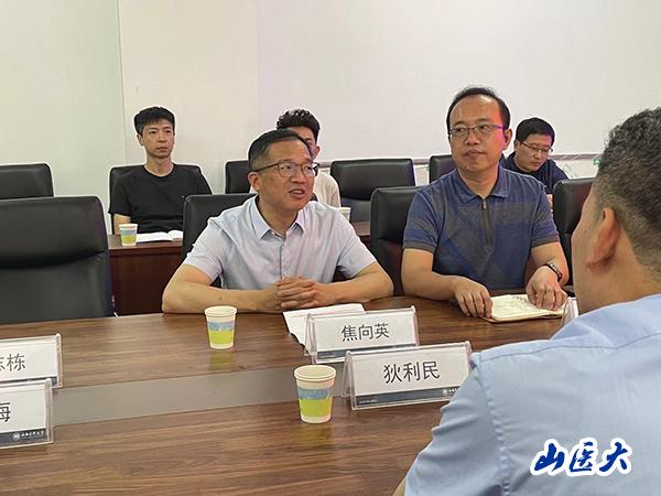 2023年5月23日,太原师范学院校党委常委、副院长狄利民带领太原师范学院保卫部部长郝松海、信息化建设与管理中心副主任杨文彬等相关部门负责同志一行五人,来我校进行了为期半天的调研交流。此次调研内容聚焦于智慧校园、校级数据共享平台、师生服务大厅、智慧安防建设等领域,旨在增进友谊,互相借鉴,共谋发展。校党委常委、副校长焦向英出席并致欢迎辞,网络中心以及武装保卫部有关人员参加了本次交流活动。