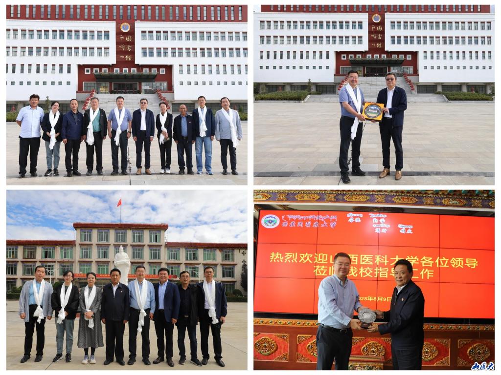 在与西藏大学、西藏藏医药大学分别交流座谈时,西藏大学校长金永兵、西藏藏医药大学校长米玛详细介绍了学校建设发展中取得的成绩和未来的发展规划,双方就人才培养、学科建设、专业建设、科学研究、国际教育、文化传承创新等方面的合作交流进行了深入细致的探讨。在西藏甘露藏药股份有限公司、西藏神猴药业有限责任公司考察调研时,双方就药品研发、成果转化等领域的合作进行了探讨,并达成了初步的合作意向。在拉萨市、日喀则市、林芝市等地,代表团成员亲切看望了我校在藏工作的优秀毕业生代表,全面了解毕业生校友的工作学习生活情况,向大家到人民健康最需要的地方工作,表示衷心问候和感谢,希望大家志存高远、脚踏实地,勇担时代重任、忠诚履职尽责,在工作中作出更大贡献。代表团成员还与林芝市卫健委、日喀则市卫健委等,就加强医疗合作、利用学校优质资源对当地医务人员开展教育培训等进行了交流探讨。