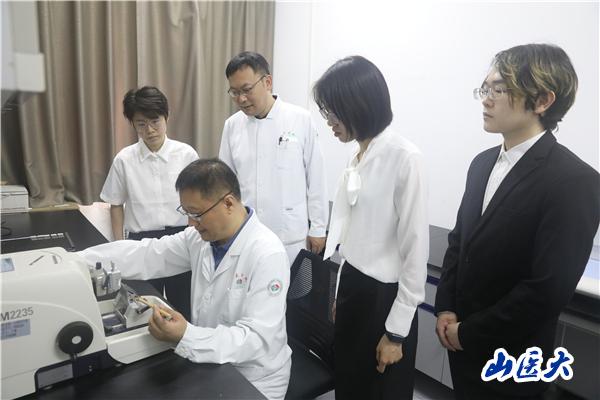王军一行实地察看了口腔医学院科研实验室和临床基础实验室,口腔医学院党政班子就学院“十四五”规划作了专项汇报。王军指出,医学院是教学、科研、临床“三者合一”,医学院教师是师者、学者、医者“三者合一”。口腔医学院要建设研究应用型学科,努力把前沿科研成果进行转化,真正落实到人民健康最需要的地方,把学生培养成人民最需要的好医生。教师不仅要善于倾听学生的声音,帮助学生创新性地提出自己的想法并积极开展科研,而且要鼓励学生投身医学事业,为增进人民健康福祉努力学习、矢志奋斗。他强调,要坚守为党育人、为国育才职责使命,把“仁心仁术”育人理念贯穿医学人才培养全过程,培养医德高尚、医术精湛的人民健康守护者。在教育教学中,要不断优化教育结构、学科结构、评价体系和成果转化等体系,全面提升办学质量。