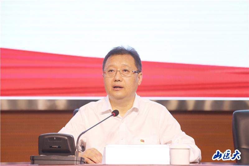王军指出,自我革命是我们党历经百年沧桑依然风华正茂的奥秘所在。要深刻认识习近平总书记关于党的自我革命的重要思想的重大意义,深入把握习近平总书记关于党的自我革命的重要思想所回答的重大问题,准确把握推进自我革命“九个以”的实践要求。他强调,全校党员干部要更加紧密地团结在以习近平同志为核心的党中央周围,以党的旗帜为旗帜、以党的方向为方向、以党的意志为意志,真正把纪律规矩转化为政治自觉、思想自觉、行动自觉,把党的自我革命进行到底,为办好人民满意的高等医学教育、建设全国一流研究应用型医科大学提供坚强政治保障。