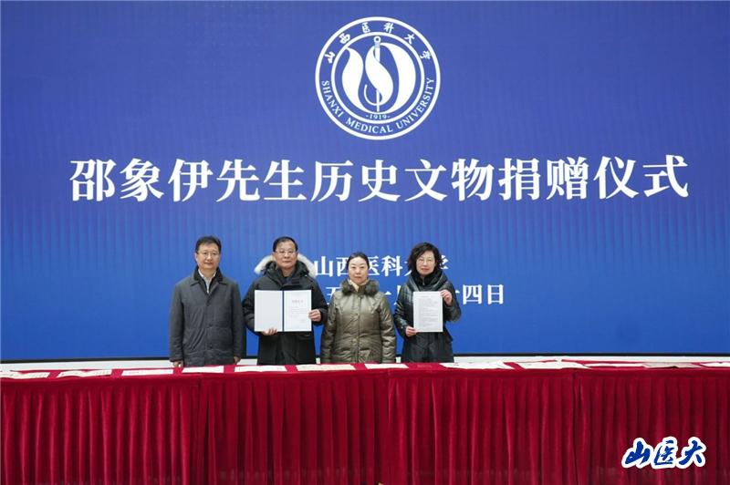 捐赠仪式上,邵坚先生和高秀女士作为邵象伊先生的亲属代表,将邵象伊先生在担任山西医学院院长、江苏医学院院长等重要职务时的任命书及各类荣誉证书、聘书、履历表、手稿等26件珍贵历史文物全部捐赠给了我校。这些文物不仅彰显了邵象伊先生的杰出功勋,更见证了他赤诚报国、甘为人梯的奋斗历程。学校将收藏好、使用好这些珍贵文物,让邵象伊先生的高尚品质和崇高精神代代相传。