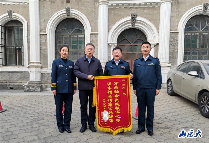 军民情谊再续新篇——中国人民解放军某部队向我校第二医院赠送锦旗