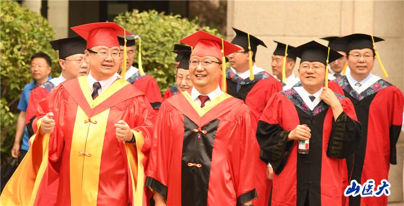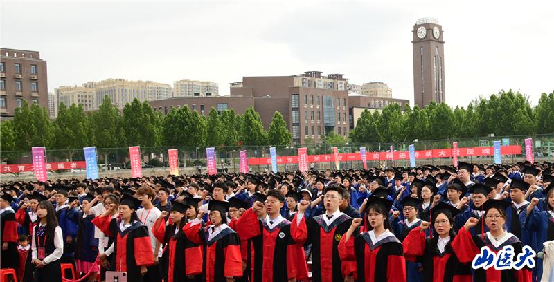 同学们,当你们手持镌刻校徽的学位证书,这不仅是个人奋斗的勋章,更是你们和学校共同成长的见证——这五年,你们在自习室里学习知识、追逐真理,母校也和你们一样共同成长。我们以同步奋进的姿态,共同书写了我们这代人无愧的山医篇章!