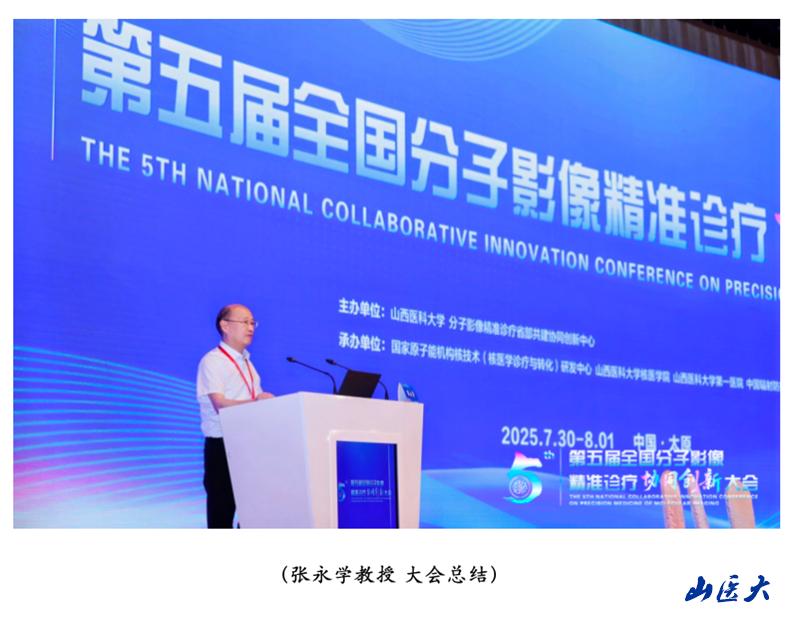 7月31日,第五届全国分子影像精准诊疗协同创新大会在太原召开。本次会议由我校和分子影像精准诊疗省部共建协同创新中心主办,国家原子能机构核技术(核医学诊疗与转化)研发中心、我校核医学院、我校第一医院和中国辐射防护研究院共同承办。来自国家原子能机构、国家核安保中心、中核集团、中国核学会、中国工程院战略咨询中心、中华医学会核医学分会、中国医师协会核医学分会等机构和学术团体以及国家原子能机构15家核技术研发中心的领导和专家莅临会议,参加会议的还有中国同辐、联影医疗、GE医疗、西门子医疗、飞利浦等协同创新中心13家理事单位代表,以及来自全国核医疗领域的行业专家共400余人齐聚一堂,聚焦分子影像精准诊疗领域的前沿发展与协同创新,擘画未来发展蓝图。