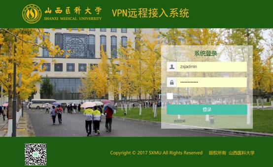 3、用浏览器再次打开https://vpn.sxmu.ncqsw.com:18443,将会看到登录页面。