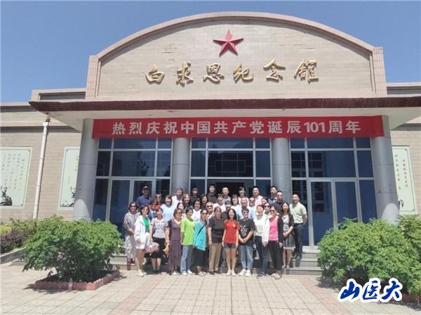 心怀虔诚之心,社员们来到了位于忻州市五台县耿镇松岩口村的白求恩纪念馆。纪念馆通过图片、文字、雕塑、影视作品等形式全面形象地展示了伟大的加拿大国际共产主义战士白求恩同志高尚求实的革命作风和可歌可泣的伟大人生。1938年白求恩在五台县松岩口村工作了3个多月,救治了大量的伤病员,创立了一整套战地医疗制度,改进了一系列医疗手段,并亲自设计、施工,将村中龙王庙改建成被晋察冀军区司令部命名的‘模范病室’。社员们均被白求恩大夫的国际主义精神、毫不利己专门利人的精神和对技术精益求精的精神打动,纷纷表示一定用“义诊”、“远程问诊”等实际行动践行和传承白求恩精神。
