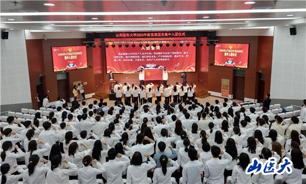 在嘹亮的国歌中,入团仪式正式开始。仪式上,吴晓兵宣读了本年度100名新发展团员名单;常彦民宣读了《团章》中有关团员义务和权利的条款;参加仪式的老师依次为20名新发展团员代表佩戴团徽;新团员代表2022级第一临床医学院杨晋彰同学、老团员代表2021级管理学院黄瀚泽同学进行了表态发言;100名新发展团员面向鲜艳的团旗,紧握右拳,光荣宣誓,这是青春的誓言,更是坚定的信仰,嘹亮而笃定。