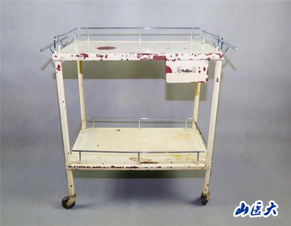 物品说明:治疗车为长方形推车,临床上使用的治疗车为两层平面式,上层为清洁区,下层为污染区,主要用于药品的配备以及置换。(由第一医院乳腺科梁芳提供)