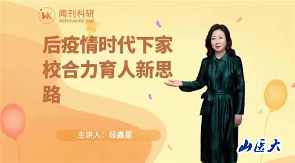 为进一步加强我校学生管理工作和心理健康教育工作,3月3日晚,学生工作部心理健康教育中心特邀请中国著名心理学家、北京师范大学博士、中国矿业大学段鑫星教授,开展《后疫情时代下家校合力育人新思路》主题线上讲座。此次讲座有上千人次学生家长参加,获得近3万次点赞。
