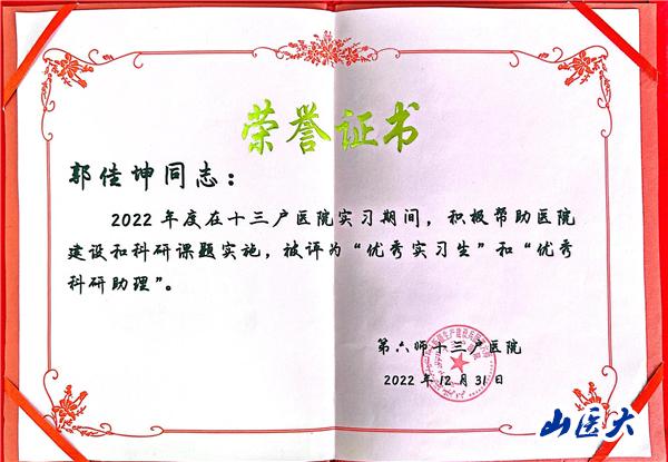 郭佳坤同学以兢兢业业的工作态度,不求回报的奉献精神,展现了山医人的良好精神风貌和工作担当,得到了群众的一致好评。