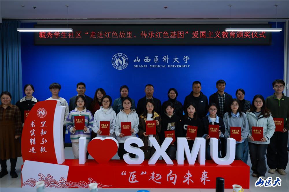 近日,“走进红色故里,传承红色基因”爱国主义教育颁奖仪式在学校大学生活动中心召开。本次活动由口腔医学院、药学院和毓秀学生社区联合主办,节日涵育爱国主义教育辅导员工作室承办。学生工作部部长张晶,药学院党委书记、毓秀社区毓慧楼栋长李薇,学生工作部副部长杨洁、杜旭峰,校团委副书记、毓秀学生社区社区长助理常彦民,药学院党委副书记童玲,辅导员工作室教师以及80余名学生参加。口腔医学院党委副书记李冰主持。