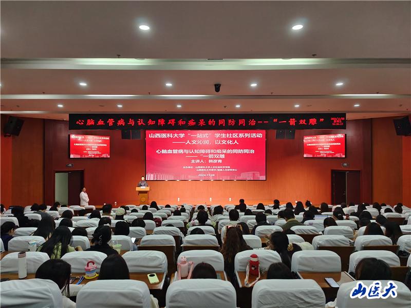 11月8日下午,应我校人文社会科学学院和医学健康人文研究中心邀请,附属心血管病医院神经内科主任、国家高级认知中心、龙城记忆和运动障碍多学科中心主任负责人韩彦青在学校杏林社区作专题讲座。学校人文社会科学学院院长、暖煦楼B座楼栋长邓蕊教授主持讲座,300余位师生聆听了讲座。