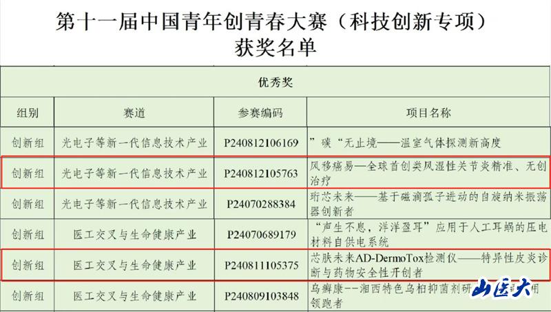 中国青年创青春大赛自2014年起已连续举办十一届,累计吸引近54万支创业团队、224万余名创业青年参加,为参赛青年提供了创业辅导、展示交流、资本对接、孵化落地、成果转化等支持,已经成为共青团服务青年创新创业的重要品牌。近年来,学校持续打造创新创业实践育人体系,激发山医学子的创新潜能。今后将加强创新创业成果转化服务,引领青年学子以更加优异的成绩为推进中国式现代化贡献青春力量。