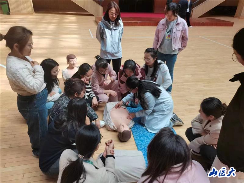 随后,实践队成员围绕心肺复苏深入阐释了“黄金4分钟”的重要性,并就“确保周围环境安全、判断患者意识、呼叫急救支援、胸外按压、开放气道、人工呼吸”等标准步骤逐一进行演示,指导参会人员进行练习,辅导员们分组进行模拟急救操作,实践队成员及体育教学部的专业教师对他们的操作流程、动作规范等方面进行严格观察。通过实训,大部分辅导员都熟练掌握急救技能,取得良好的学习成效。