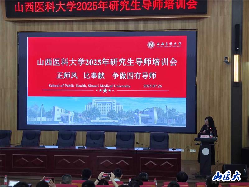 研究生学院依托中国学位与研究生教育学会“四有导师学院”在线研修平台,组织研究生导师参加线上专题培训,围绕《中华人民共和国学位法》、四史教育、政策解读、教育动态、教育家精神等板块内容,精选国内知名专家在线课程,要求各培养单位和导师高度重视本次研修工作,并将导师参与及完成情况作为导师年度考核、研究生招生指标分配的重要依据。研究生学院联合基础医学院、公共卫生学院举办 “正师风、比奉献,争做四有导师”专题培训会。邀请山西省人民政府学位委员会办公室副主任、山西省教育厅学位管理与研究生教育处副处长芦永明作《践行教育家科学家精神,育“经师” “仁师”相统一的大先生》专题报告,教育引导广大导师当好学生成长成才的引路人。曹济民、武志芳、余红梅等多位资深导师围绕“立德树人” “学术规范” “导学关系” “科研创新”等主题,进行了专题讲授和经验分享。研究生学院还先后赴药学院、第二临床医学院、第五临床医学院和附属肿瘤医院等培养单位,指导开展导师培训。各培养单位根据学校研究生导师培训总体安排,结合学科特色与发展需求,聚焦高质量创新人才培养、构建和谐导学关系、提升导师指导水平等内容,扎实推进导师培训工作。