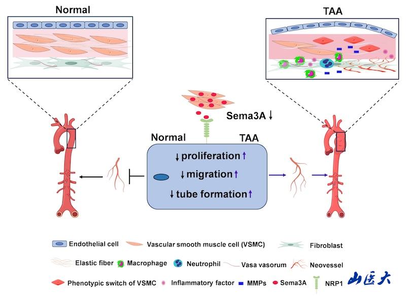 我校曹济民教授团队在一区TOP期刊《Angiogenesis》发文揭示信号素3A (Semaphorin 3A) 抑制胸主动脉瘤进展和夹层形成的新作用机制