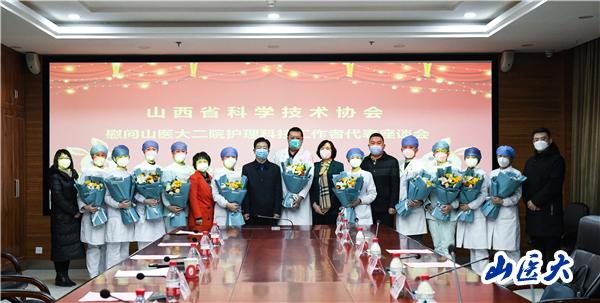 1月16日,在春节即将来临之际,山西省科协党组成员、副主席王继龙一行来到我校第二医院看望慰问一线护理工作者并举行新春座谈会。第二医院党委委员、副院长原大江出席会议,郭锦丽、张颖惠、王香莉、刘晋、章铮、李亚琴、田小荣、张永刚、董瑛、姜萍等一线护理工作者代表参加了会议。会议由山西省护理学会理事长薛平主持。