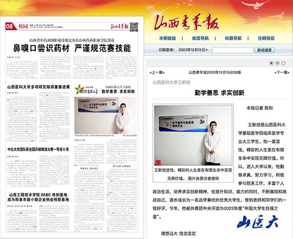2021年,王新旭作为负责人参加山西省第十七届“兴晋挑战杯”大学生课外学术科技作品比赛,获得一等奖,作为主要参与人获得山西省第十七届 “兴晋挑战杯”大学生课外学术科技作品比赛二等奖;2022年,作为项目主持人成功获批2022年国家级大学生创新创业训练计划重点支持领域项目,作为主要参与人获得第八届中国国际“互联网+”大学生创新创业大赛两项国家级铜奖和一项省级金奖。