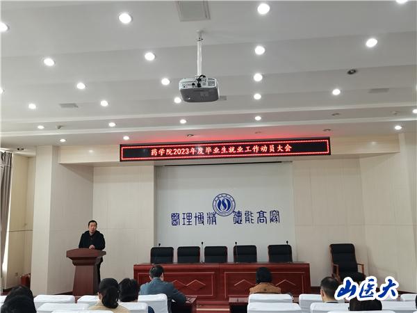 会上,郭建锴详细解读了当前的就业形势和就业相关政策,通报了药学院2023届各专业毕业生的升学率及就业情况,从不同的角度分析影响毕业生目前就业困难的原因,并通过具体的求职案例为药学院毕业年级的辅导员、毕业生指导老师提出了宝贵建议。他指出,为了帮助毕业生尽快就业,学校将充分挖掘我校校友以及其他社会资源,积极拓宽毕业生就业渠道,全方位行动提高毕业生就业率。
